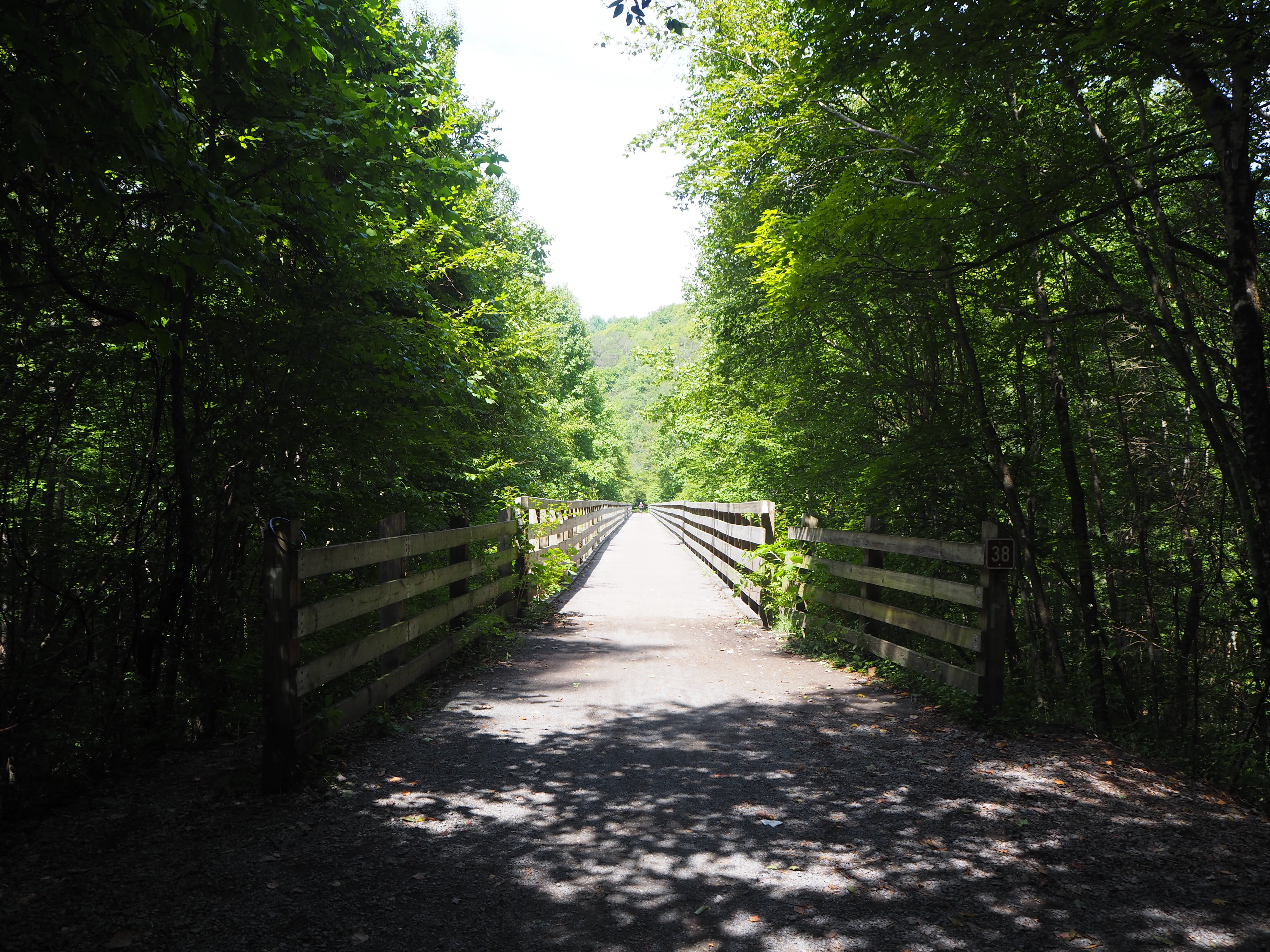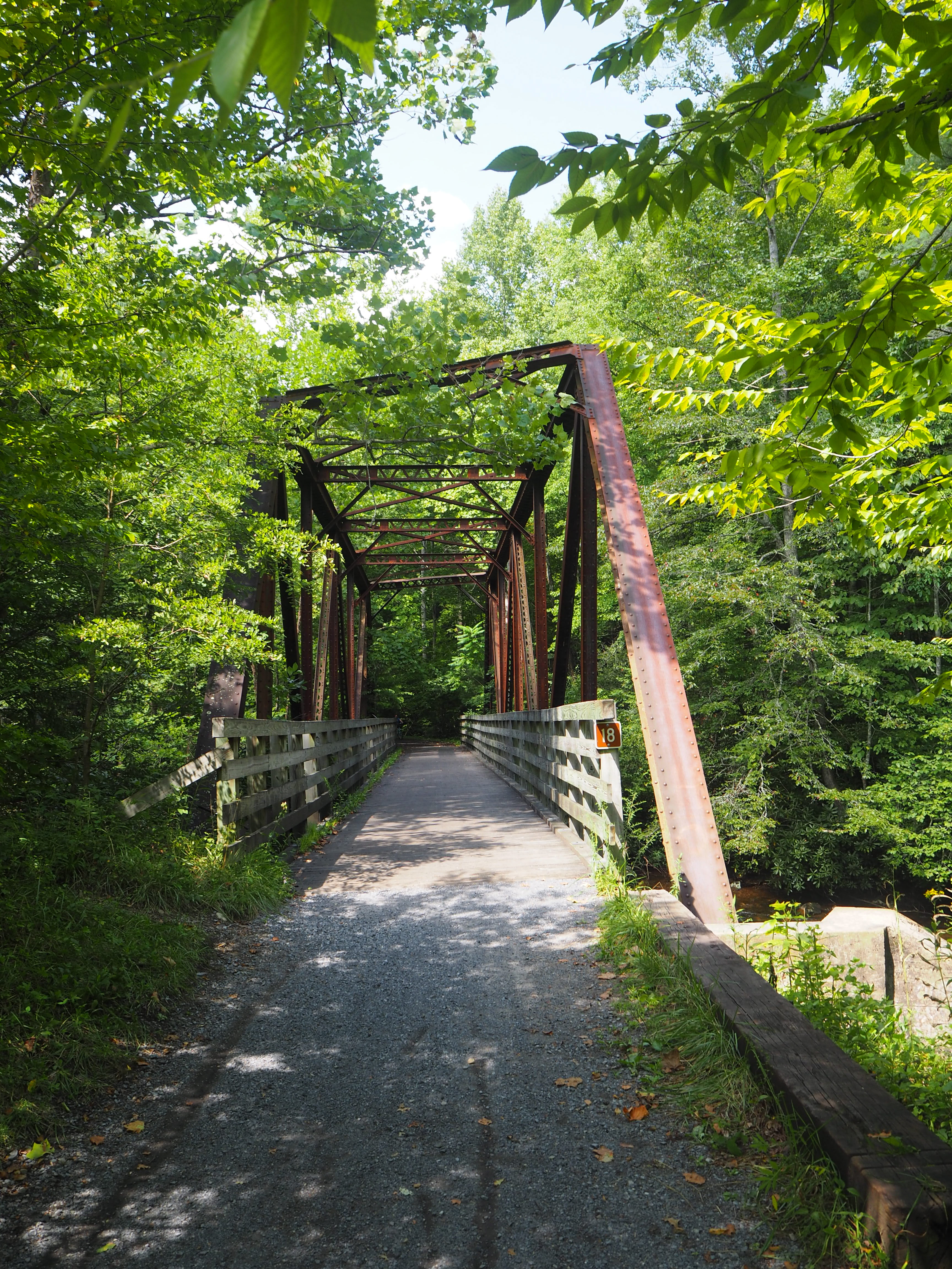 The trail is an old rail trail that runs from Abingdon VA to the Virginia North Carolina state line. Since it was a rail trail it features gradual climbs and descents, and lots of mountain scenic beauty.